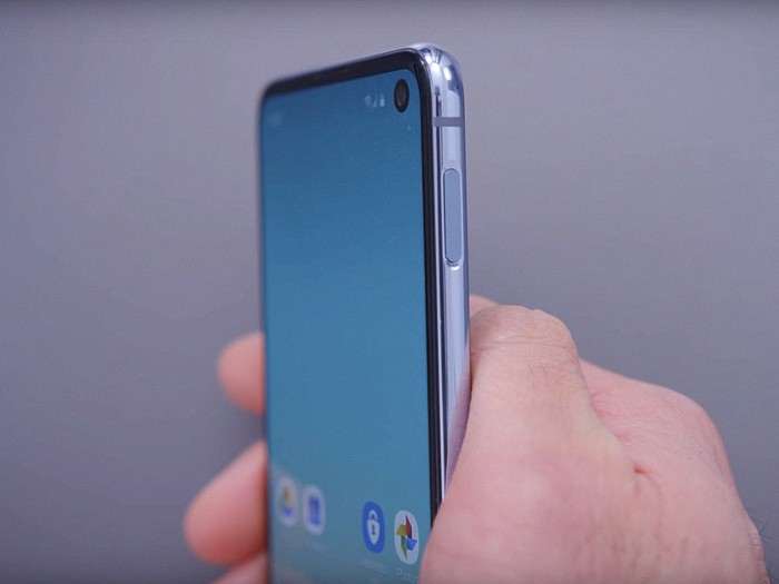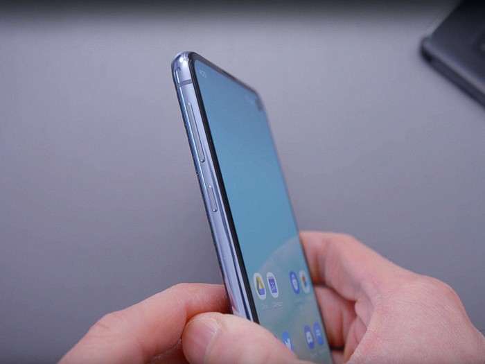 Младший представитель линейки выглядит и чувствуется в руках флагманом, не уступая по ощущению премиальности S10 и S10 Plus. Визуально аппарат отличается от своих более дорогих собратьев плоским стеклом дисплея, которое аккуратно переходит в металлическую рамку по периметру корпуса. Возможно смотрится это не столь эстетично как закругленные экраны в старших моделях, но плоский экран удобнее в использования из-за отсутствия ложных нажатий по покатым граням. Экономии на материалах в S10e не замечено, корпус устройства также выполнен из закаленного стекла Gorilla и имеет защиту от воды и пыли стандарта IP68.