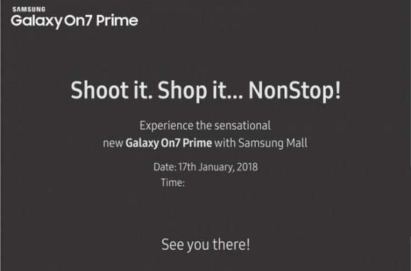 Ведущие журналисты начали получать приглашения от компании Samsung на презентацию нового смартфона Galaxy On7 Prime, который дебютирует 17 января 2018 года в Индии.