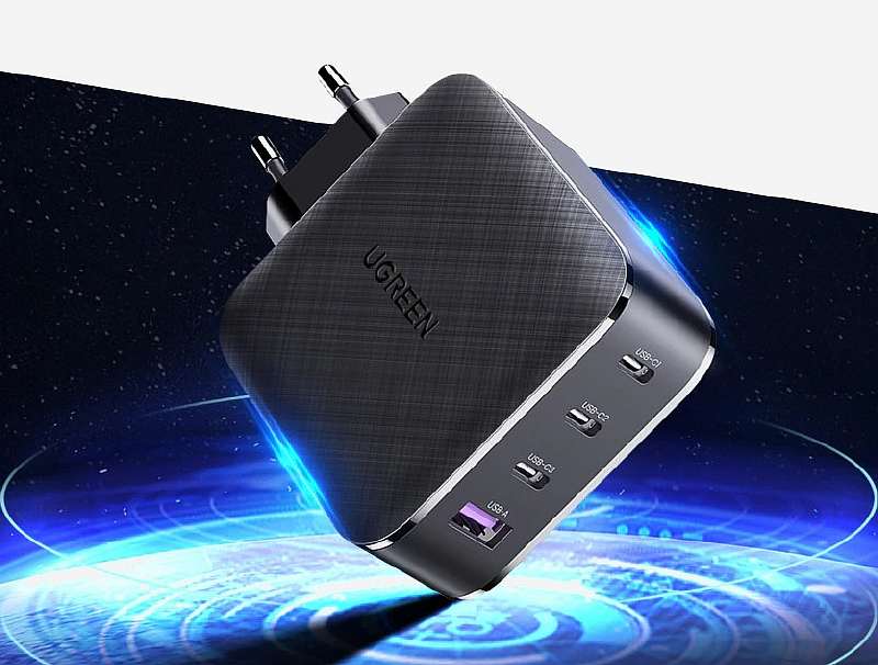 Ugreen GaN – вероятно, лучшая мультизарядка на рынке. Это небольшой, но увесистый блок питания, который выдает 100 Ватт совокупной мощности, имеет целых четыре порта – три Type-C и один USB-A, а также поддерживает все распространенные протоколы быстрой зарядки. У автора этих строк около года трудится аналогичный адаптер на 65 Вт, он одновременно запитывает ноутбук и смартфон и совершенно не греется. А запаса мощности в новой модели хватит даже для 16-дюймового MacBook Pro!