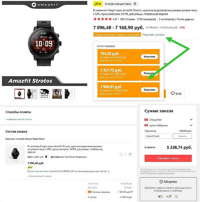 Еще один приятный момент: Amazfit Stratos доступны с бесплатной экспресс-доставкой из России, что делает предложение реально выгодным. Поэтому берите купон продавца и вписывайте промокод POKALETO400, пока акция не закончилась.