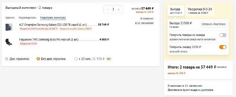 Сейчас девайс можно забрать в комплекте с TWS-наушниками Samsung Buds Pro за 57 449 рублей. Для сравнения, на Ядекс.Маркете один только смартфон стоит от 55 кэсов, причем такие цены есть только у серых продавцов. На сайтах официльных ритейлеров флагман до сих пор стоит под 70 тысяч!