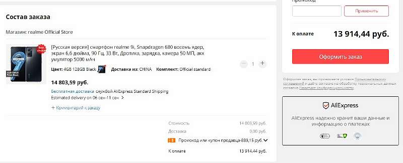 Ассортимент бренда Realme богат на классные бюджетные смартфоны. Особенно удачным получился Realme 9i, который сейчас на AliExpress в конфигурации 4/128 ГБ выставлен всего за 14 тысяч рублей.