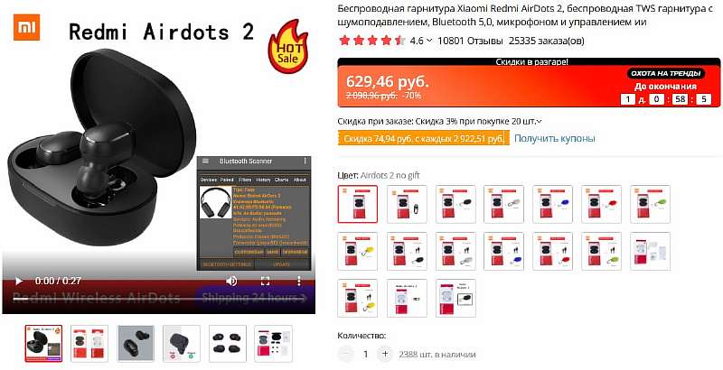 Прямо сейчас на Али Redmi AirDots распродают за невероятные 629 рублей, так дешево они не стоили с момента выхода. В России за аналогичную модель просят от 1.3 тысяч, так что ради двукратной экономии можно подождать пару недель доставки из Китая. Вот ссылка на лот – это проверенный селлер с 25 тыс. заказов и 10 тыс. положительных отзывов.