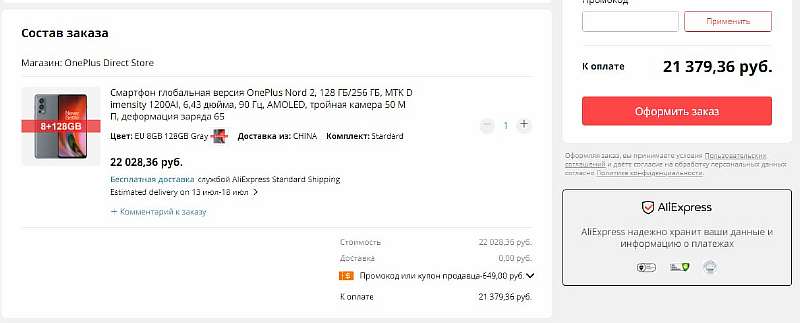 Чтобы получить скидку на OnePlus Nord 2, переходите по ссылке, хватайте купон продавца и оформляйте заказ.