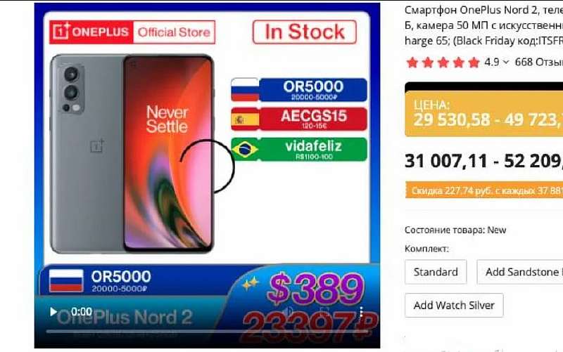 Чтобы забрать дешевый Nord 2, переходите по этой ссылке, добавляйте девайс в корзину, и 6 декабря оформляйте заказ с купоном продавца и промокодом OR5000.