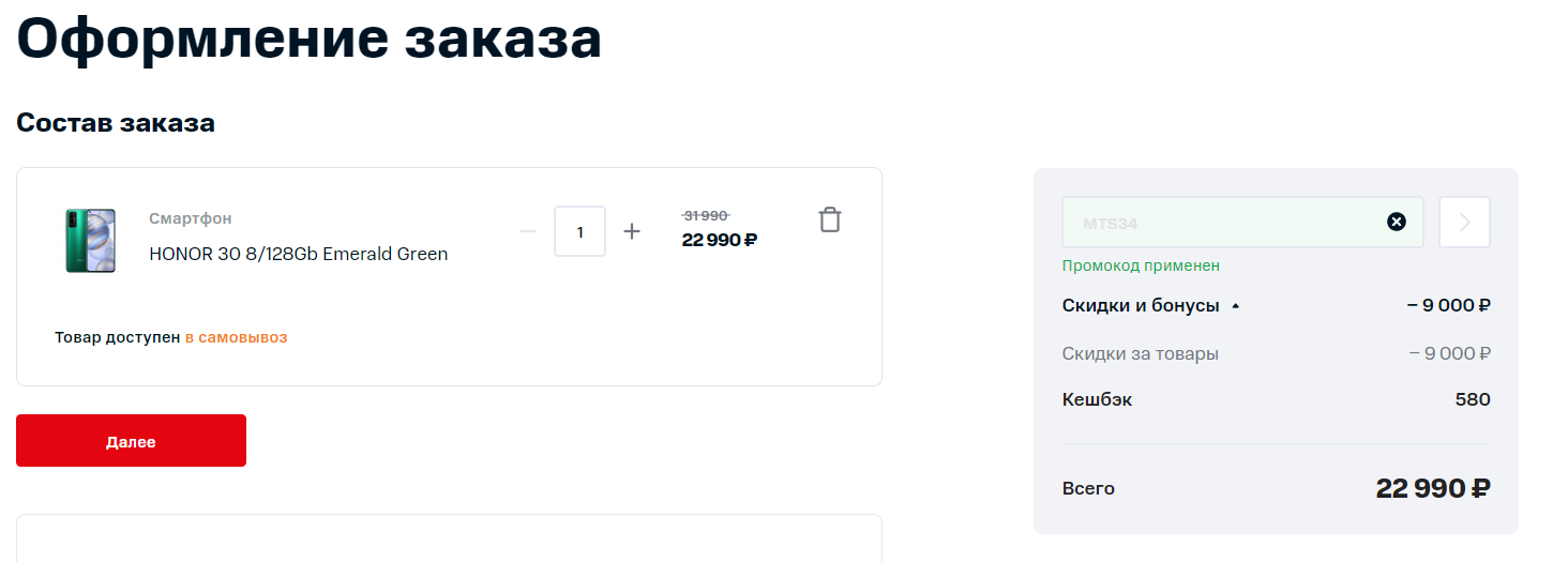 Однако, даже с учетом минусов, ничего сравнимого по характеристикам за 23 тысячи сейчас нет. Чтобы купить Honor 30, переходите по ссылке, оформляйте заказ и не забудьте применить промокод MTS34, чтобы получить скидку. Она действует только при онлайн оплате .
