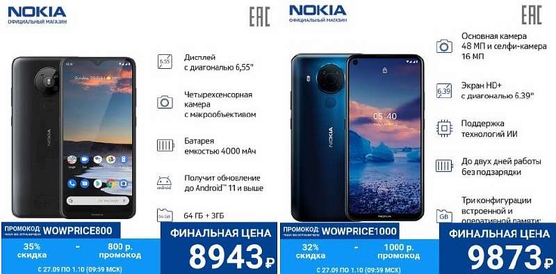 Вдобавок, из-за невысокого спроса телефоны компании часто попадают на распродажи, что и произошло с Nokia 5.3 и Nokia 5.4. Эти девайсы сейчас доступны в официальном магазине бренда на Tmall с очень хорошими скидками: за 8 943 и 9 873 рублей, против стандартной рыночной цены 15 и 16 тыс. рублей соответственно.