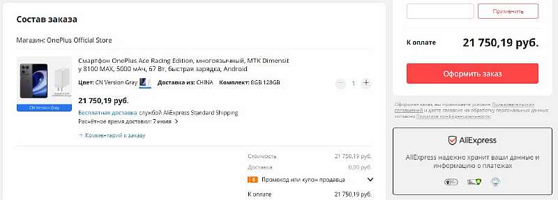 На AliExpress регулярно проходят акции, в рамках которых можно урвать с жирной скидкой какой-нибудь классный телефон. Причем на распродажи попадают не только старые модели, но и свежие новинки. Например, OnePlus Ace Racing Edition. Его продажи начались совсем недавно – в середине мая за 28 тысяч, но девайс уже можно купить по сниженной цене за 21 750 рублей.