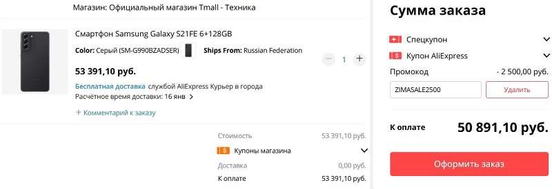 На AliExpress во всю идет «зимняя ликвидация», и одним из главных лотов распродажи стал Samsung Galaxy S21 FE. Это новый флагман корейской фирмы, представленный буквально неделю назад. В рознице за него просят 59 990 рублей, но мы знаем, как сэкономить 9 тысяч и забрать новинку за 50 890 деревянных.