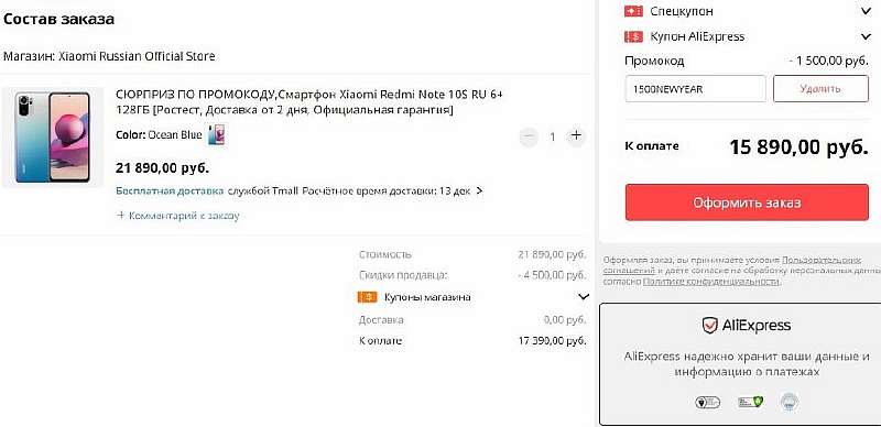 Прямо сейчас Redmi Note 10S распродают со скидкой в официальном российском магазине Xiaomi на Tmall. Нужно применить промокод 1500NEWYEAR. Акция продлится до 10 декабря включительно.
