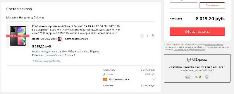 Девайс отлично подойдет в качестве первого телефона школьнику или как основная трубка для не слишком притязательного пользователя. Так что, смелее переходите по ссылке и забирайте Redmi 10A. Никакие промокоды вводить не нужно.