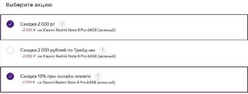 Никаких подводный камней в акции нет, просто переходите по ссылке, добавляйте смартфон в корзину и проследите, чтобы активировались две скидки: 2000 рублей и 1799 рублей при онлайн-оплате.