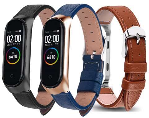 Кожаный ремешок для браслета Mi Band 5 может приглянуться ценителям классических наручных часов. Он прошит по краям и приятен на ощупь. Есть 8 цветов, включая белый, синий и черный. Не обошлось дело и без классической металлической застежки. Правда, ремешок по умолчанию явно рассчитан на человека с узким запястьем, так что крупным мужчинам придется проделывать дополнительные отверстия самостоятельно. В остальном никаких нареканий.