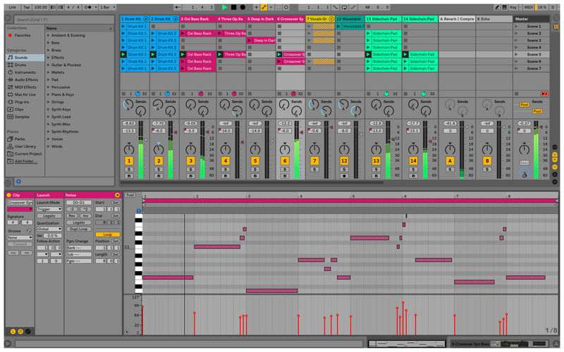 Интерфейса тут не перегружен, как в других секвенсорах. В рабочей области отображается лишь самое необходимое, что позволяет комфортно работать даже на 13-дюймовом экране ноутбука. Можно использовать неограниченное количество звуковых дорожек, подключать любые MIDI-контролеры, настраивать автоматизацию процессов. Вдобавок, в Ableton одна из самых богатых библиотек оригинальных звуков. Одних семплов тут практически на 50 гигабайт, что уж говорить о плагинах, эффектах и виртуальных инструментах. Однозначно лучший вариант для создания музыки на ПК Windows.