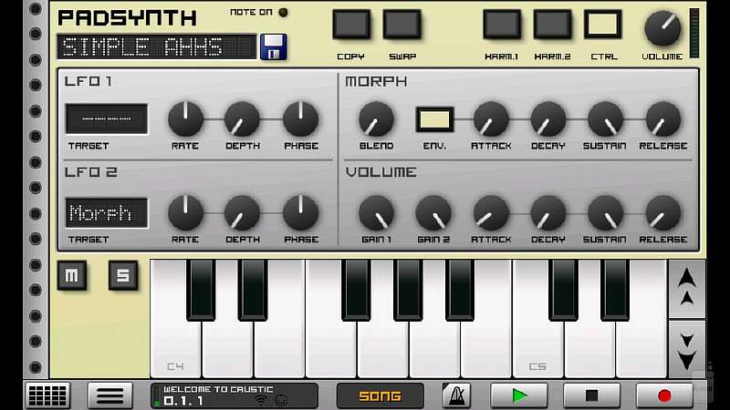 Всем, кто загорелся делать музыку на компьютере, стоит попробовать и Caustic 3. Приложение хорошо идет даже на древних ПК. Отчасти это обусловлено интерфейсом, который тут предельно прост и выполнен вертикально. То есть за раз отображается лишь один элемент, а чтобы получить доступ к следующему – нужно проскролить до него с помощью бокового слайдера. Немного неудобно, но за час-два к такому привыкаешь.