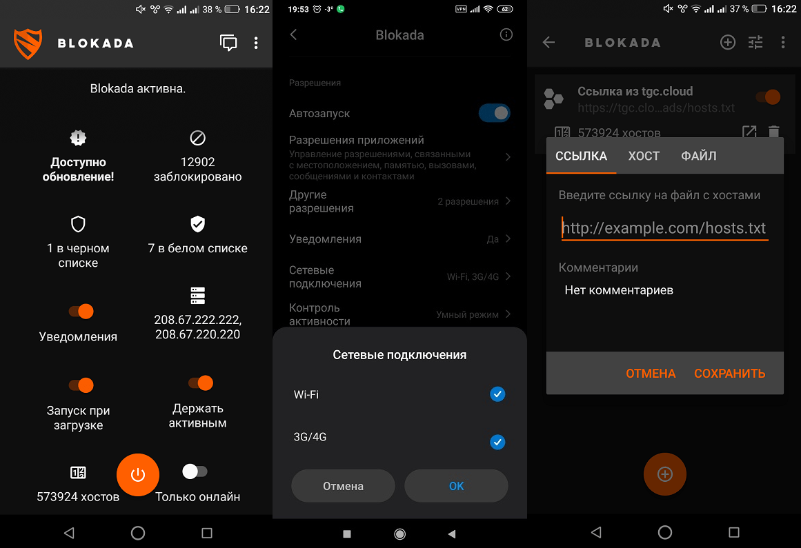 Наверняка многие читатели даже не слышали об этой программе. Мы считаем это несправедливостью, поскольку если у вас в телефоне выскакивает реклама, Blokada способна эффективно решить эту проблему. Она позиционируется как полностью бесплатный блокировщик с открытым исходным кодом, действующий во всех приложениях. Как и AdAway программа работает с модификацией списка Hosts, но она заточена на стабильное функционирование без Root-доступа.