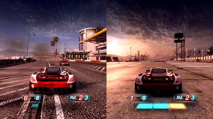 Split/Second — аркадные гонки, где главной задачей игрока является не чистое прохождение трассы с максимальной скоростью, а получение максимального удовольствия от уничтожения всего вокруг и создания помех соперникам. Есть несколько режимов игры, в том числе «один экран», где монитор делится на две части, на каждой из которых отображаются действия отдельного игрока.