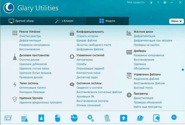 Чтобы перечислить все возможности Glary Utilities не хватит статьи, скажем лишь что она не подойдет для совсем уж старых ПК, так как для корректной работы данного софта требуется адекватное количество оперативной памяти.