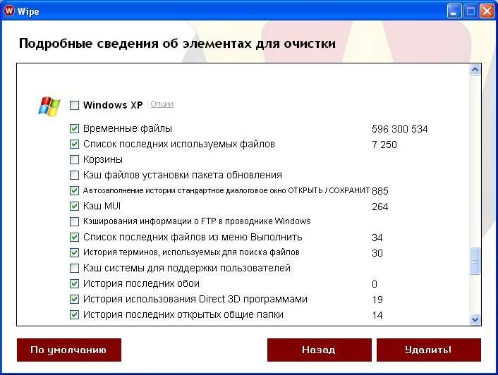 Wipe — простая и интуитивно понятная программа, которая позволяет в пару кликов очистить компьютер от мусора и временных файлов, а также удалить кэшированную информацию об активности в сети. Основное направление работы софта — веб-браузеры, однако она эффективно справляется и с освобождением дискового пространства.