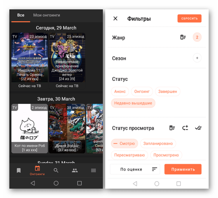 В Shikimori App есть и удобный календарь онгоингов на самом видном месте — с ним вы точно не пропустите выход новых серий. При этом само приложение очень мало весит, не перегружено бесполезными функциями и идет даже на древних версиях Android. Довольно удобный интерфейс, темная и светлая темы в наличии.