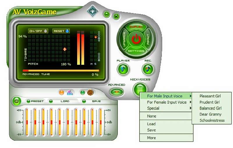 Также в интерфейсе программы можно найти немало уже готовых пресетов, один из которых, например, позволяет менять мужской голос на женский и наоборот. MorphVOX Junior стабильно работает с онлайн-играми и мессенджерами, однако в определённых случаях могут возникнуть трудности с ее настройкой. Софт предназначен для использования в реальном времени.