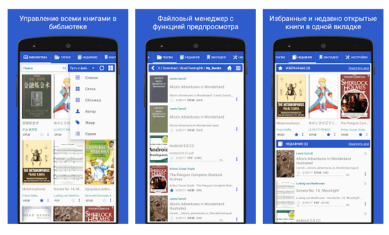 Дополняется вышеуказанное возможностью добавления аннотаций, выделения текста и поддержкой словарей. С помощью приложения можно запускать и DVJU-файлы. EBookDroid — один из немногих ридеров, где есть умное масштабирование, подстраивающее ширину текста под экран Android-устройства. Это и является главным аргументом в его пользу. Чаще всего пользователи жалуются на запутанный интерфейс и вылеты, которые участились в последних обновлениях. Однако, с учетом широкого функционала и того, что приложение полностью бесплатное, это можно простить.