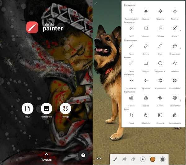 Лучшие приложения для рисования на Андроид пополняет Infinite Painter, упор в котором сделан на работу с кистями. Главной фишкой приложения является один из самых продвинутых алгоритмов для рисования, способный прекрасно имитировать фактуру, жесткость, разводы и взаимодействие с текстурой бумаги. Получается красочно и сочно. Разнообразных кистей в Infinite Painter более 160-и, при этом можно создавать свои или редактировать уже имеющиеся.