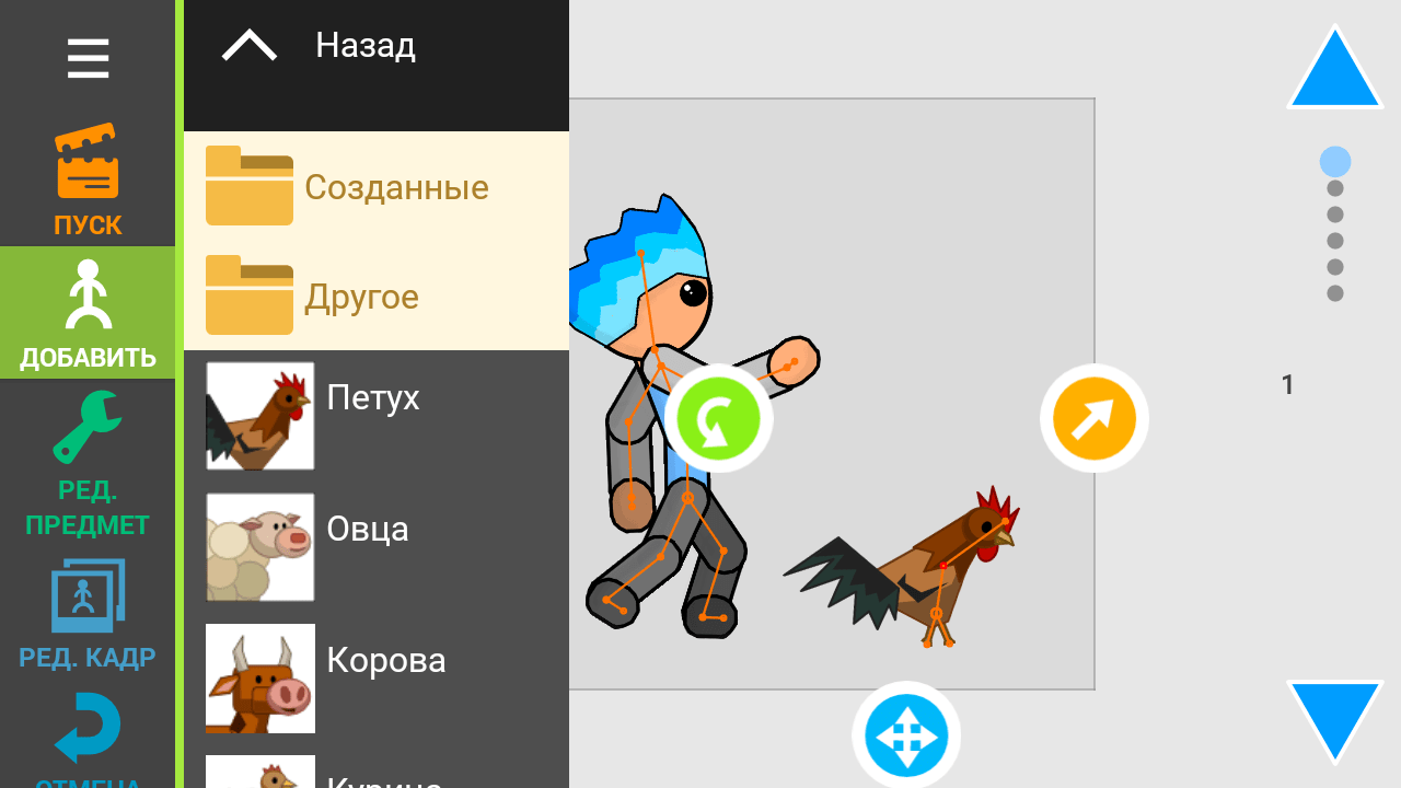 Рисовать можно в самой программе, все инструменты для этого есть. А для ленивых имеется библиотека пресетов с уже готовыми персонажами и объектами. Здесь же можно наложить звуки и музыку на готовые сцены, а реплики героев просто записать на диктофон. Полученный результат сохраняется в формате mp4, и им сразу же можно поделиться. Приложение «Рисуем Мультфильмы 2» отлично подойдет, чтобы увлечь ребенка и увлечься самому.