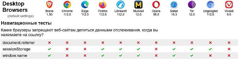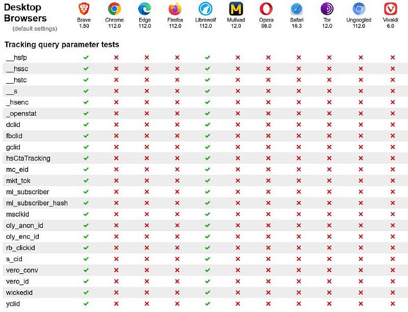Какие браузеры удаляют параметры URL, позволяющие отследить пользователя: