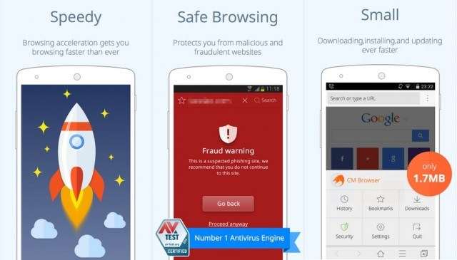Главной фишкой CM Browser является продвинутая система безопасности, помогающая пользователю избегать фишинговых ссылок и вредоносных программ. Стоит вам открыть подозрительную страницу, как браузер сообщит вам об этом. Режим повышенной безопасности не делает это приложение излишне медленным. По результатам тестов, скорость CM Browser незначительно ниже, чем у Google Chrome.