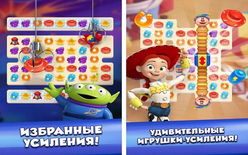 Toy Story Drop — еще один классический представитель жанра «три в ряд». С той лишь разницей, что выполнен он в узнаваемой стилистике фильма «История игрушек». Чтобы убирать фигуры с игрового поля можно не только совмещать одинаковые элементы, но и использовать различные бонусные способности.