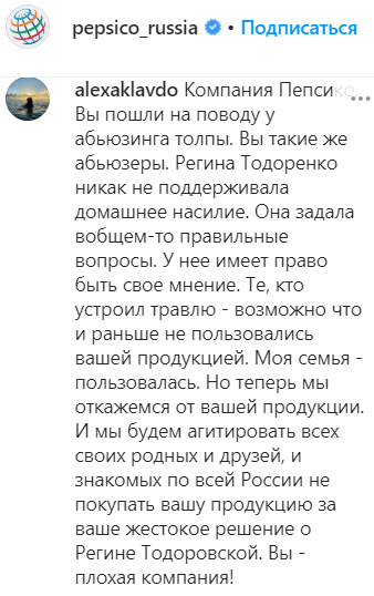 Кроме тонны хейта возникли и более реальные последствия — комментарии посыпались и в аккаунты брендов, с которыми сотрудничает Тодоренко: