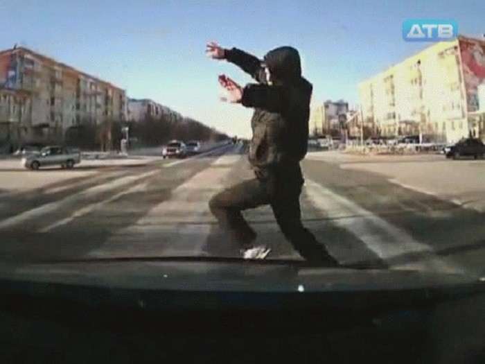 Вы продолжаете ехать, и вдруг один из стоящих начинает кричать: оказывается, вы «наехали» ему на ногу.