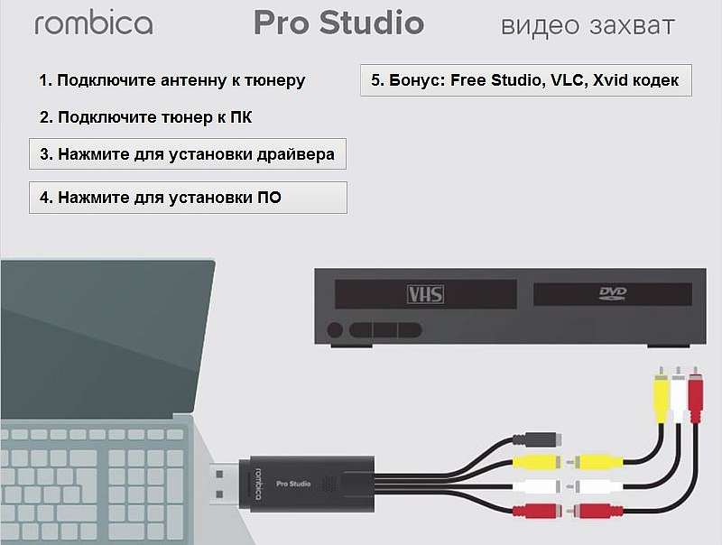 Специальный переходник, он же карта видеозахвата, между видеомагнитофоном и компьютером. Дешевые модели стоят около тысячи (а если заказывать с Алиэкспресс, можно уложиться и в 500 рублей). Дорогие переходники не нужны — гаджет это простой.