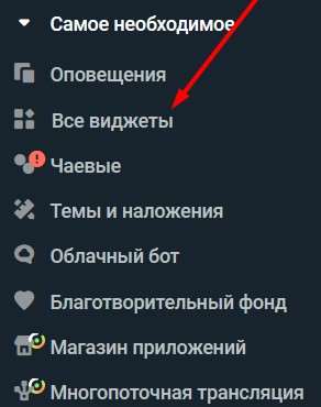 - На главной странице выбираем «Все виджеты» в меню «Самое необходимое» слева.