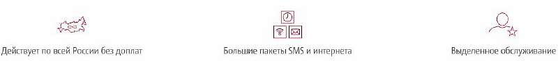 | Особенности | Бесплатное спутниковое ТВ | Действует в любых регионах РФ, 10% скидка на Спутниковое ТВ при подключении опции Автоплатеж. | Возможность делиться пакетами с трафиком, SMS и минутами с членами семьи (5 дополнительных номеров). |