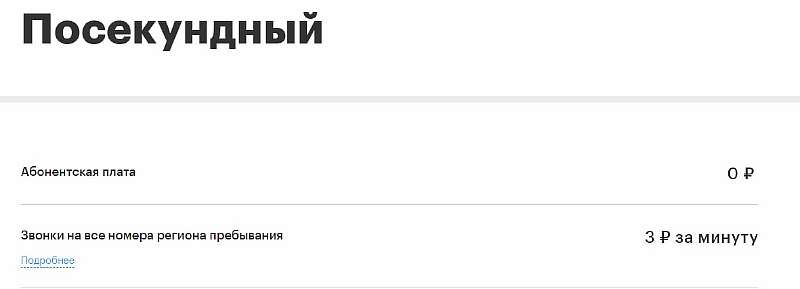 Для всех, кому нужен тариф на запасной телефон или чтобы изредка куда-то звонить, неплохим вариантом станет «Посекундный». Никакой абонентской платы – деньги списываются только за минуты разговора.