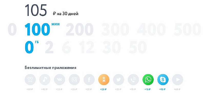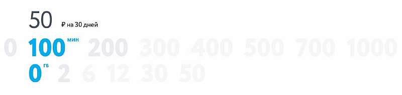 Тариф 0 ГБ в базовой конфигурации со 100 минутами звонков на другие номера стоит всего 50 р (предложение для Москвы), за максимальный пакет с 2 тыс. минут придется заплатить уже 540 рублей.