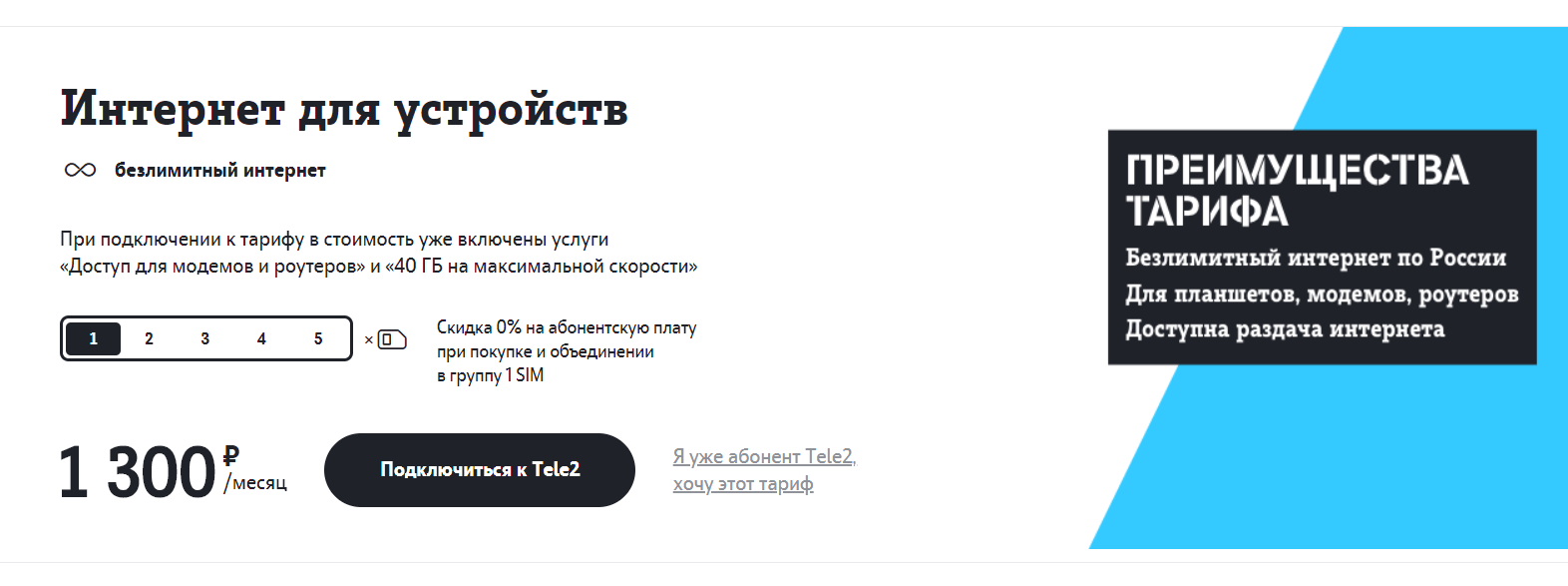 А предлагает он безлимитный интернет с возможностью его раздачи с любых устройств, в том числе LTE-модемов, за 1300 рублей в месяц (Москва и Московская область). Причем на максимальной скорости будут доступны только 40 ГБ в месяц, далее скорость снизится до 4 Мбит/c. Дороговато за безлимит с ограничениями? Пожалуй. Но у нового тарифа очень хитрая структура, так что его можно сделать дешевле, попутно лишившись нескольких бонусов.