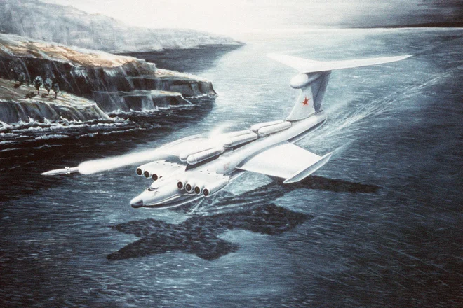 В морском бою XX века идеальная тактика выглядела так: первым обнаружить врага, подойти на дистанцию пуска, выпустить ракеты и быстро уйти. В этой концепции экранопланы выглядели многообещающе. Они используют ‘эффект экрана’ — когда самолёт летит в нескольких метрах от поверхности, поток воздуха создаёт дополнительную подъёмную силу. Это позволяет сделать крыло меньшей площади, а значит — поднять больше груза. Гибрид самолёта и корабля, который передвигается только над водой (потому что она ровная и предсказуемая).