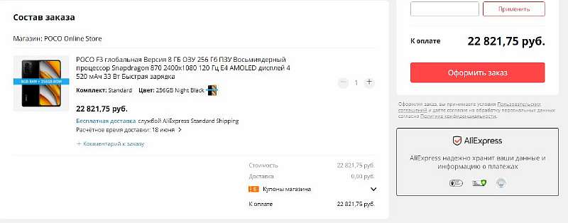 Нашли очередную вкуснотищу на просторах AliExpress. Официальный онлайн-магазина Xiaomi выставил на распродажу Poco F3. Топовую версию с 8 ГБ оперативной и 256 ГБ постоянной памяти сейчас можно купить за 22 821 рубль. С учетом характеристик гаджета это отличная цена, для сравнения, на Яндекс.Маркете за телефон просят от 28 тысяч.