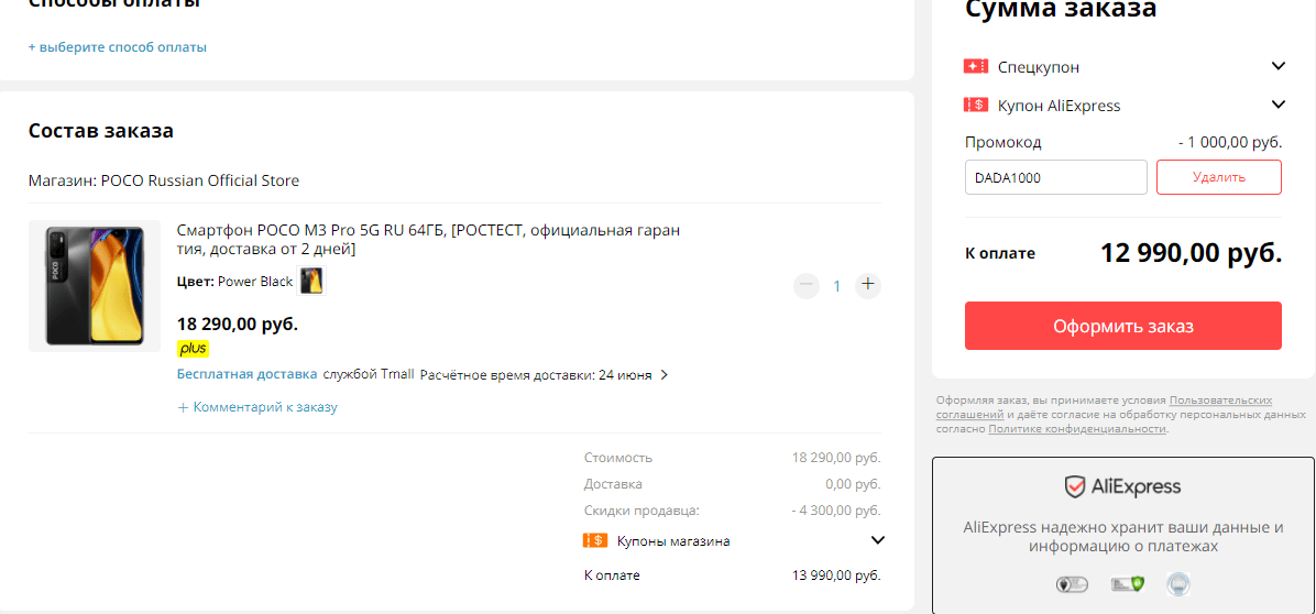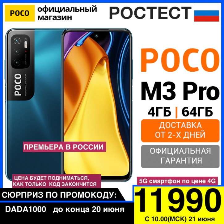 Второй и самый выгодный вариант – заказать аппарат на том же Tmall 21 июня – в день официального старта продаж с ещё более вкусной скидкой. Начиная с 10 мск, на Poco M3 Pro 4/64 ГБ будет действовать спеццена 11 990 рублей. Наверняка, желающих сэкономить 6 тысяч рублей будет много, так что рекомендуем не тормозить и завести будильник, чтобы не прозевать акцию.