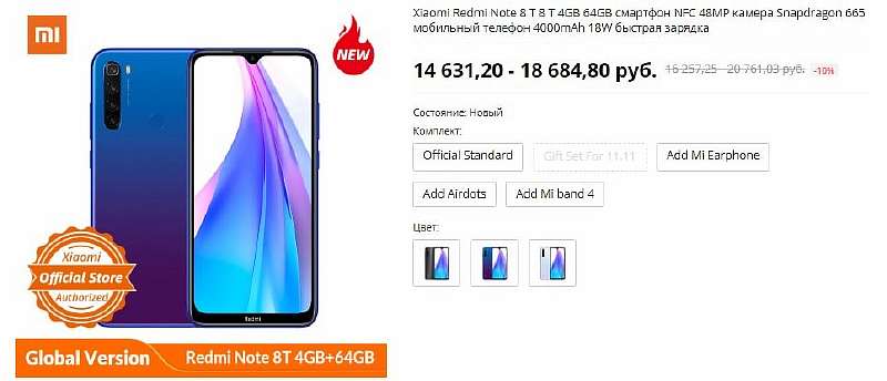 Сегодня Note 8T по ошибке появился в продаже в официальном магазине бренда на Aliexpress, откуда его оперативно удалили. Телефон был доступен в двух версиях с 32/3 и 64/4 ГБ памяти, стоимость которых начиналась с 13 180 и 14 630 рублей соответственно.