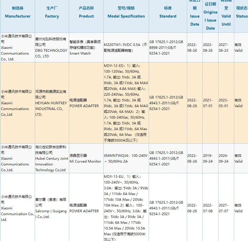 Ресурс XiaomiUI сообщает, что продукт под названием MDY-13-EU который помечен как сетевое зарядное устройство, был одобрен китайскими регулирующими органами. В описании указаны различные значения электрического напряжения и силы тока. Топовая комбинация 20 В / 10.5 А, позволяет достичь мощности 210 Вт, так что это будет самое мощное зарядное устройство на рынке, которое превосходит vivo на 10 Вт.