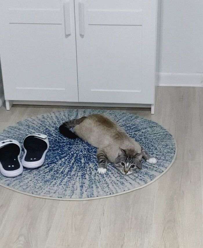 Похоже, ему действительно нравится этот коврик