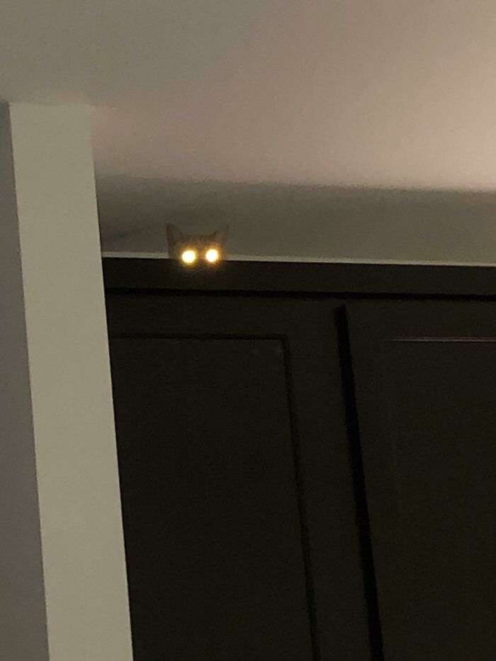 Лежит на шкафу и часами смотрит в потолок
