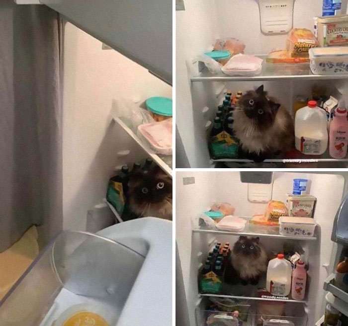 Каждый раз, когда освобождают место в холодильнике, кошка думает, что это для нее